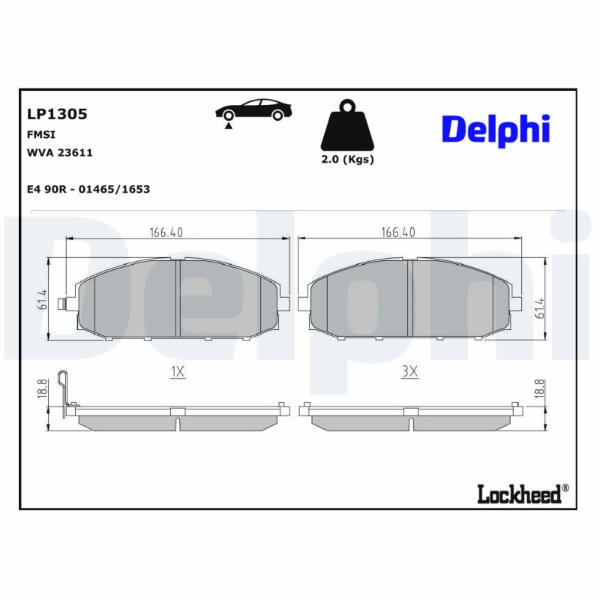 Sada brzdových destiček, kotoučová brzda DELPHI LP1305