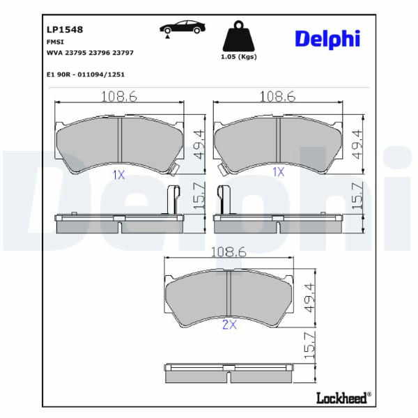 Sada brzdových destiček, kotoučová brzda DELPHI LP1548