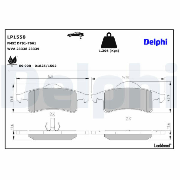 Sada brzdových destiček, kotoučová brzda DELPHI LP1558
