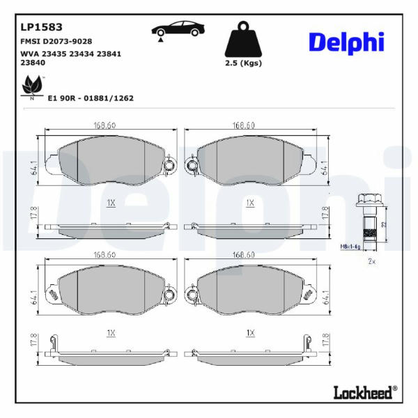 Sada brzdových destiček, kotoučová brzda DELPHI LP1583