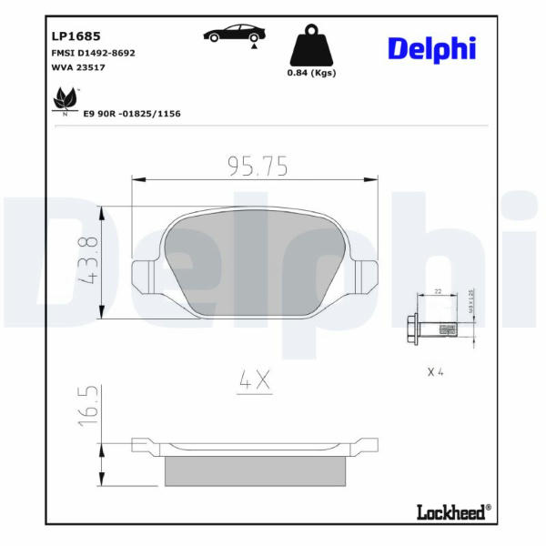 Sada brzdových destiček, kotoučová brzda DELPHI LP1685