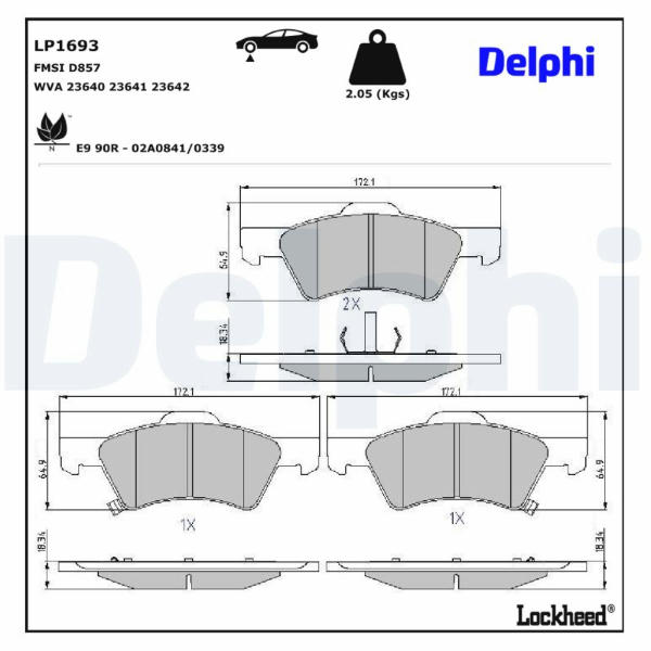 Sada brzdových destiček, kotoučová brzda DELPHI LP1693