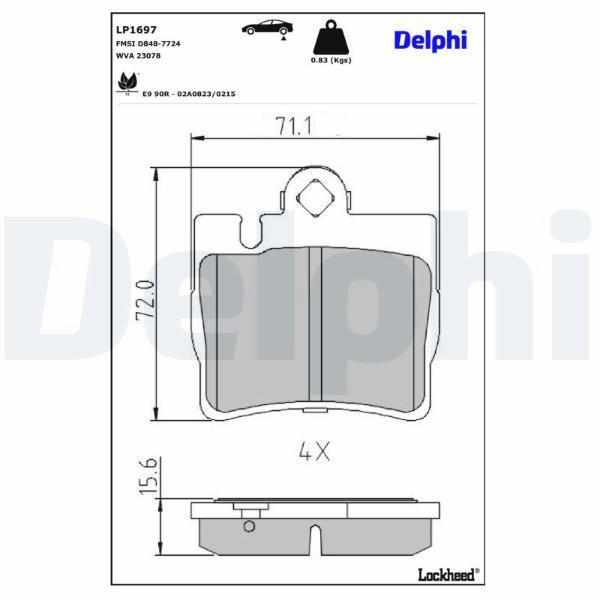 Sada brzdových destiček, kotoučová brzda DELPHI LP1697