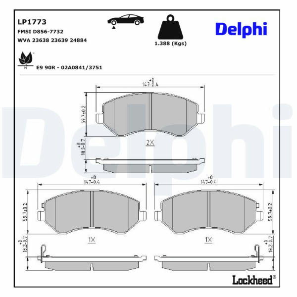 Sada brzdových destiček, kotoučová brzda DELPHI LP1773