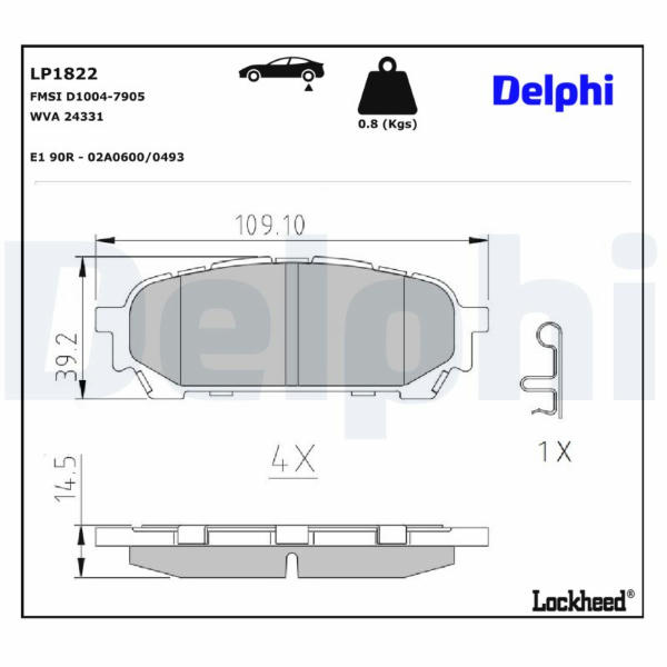 Sada brzdových destiček, kotoučová brzda DELPHI LP1822