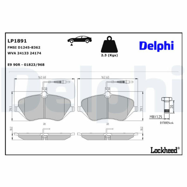 Sada brzdových destiček, kotoučová brzda DELPHI LP1891