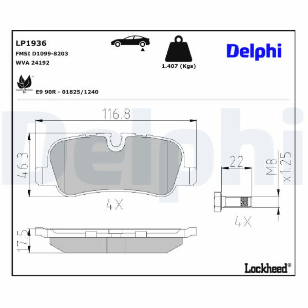 Sada brzdových destiček, kotoučová brzda DELPHI LP1936