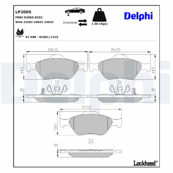 Sada brzdových destiček, kotoučová brzda DELPHI LP2005