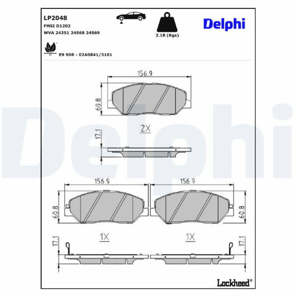 Sada brzdových destiček, kotoučová brzda DELPHI LP2048