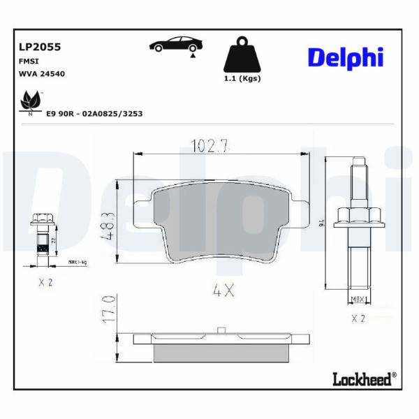 Sada brzdových destiček, kotoučová brzda DELPHI LP2055