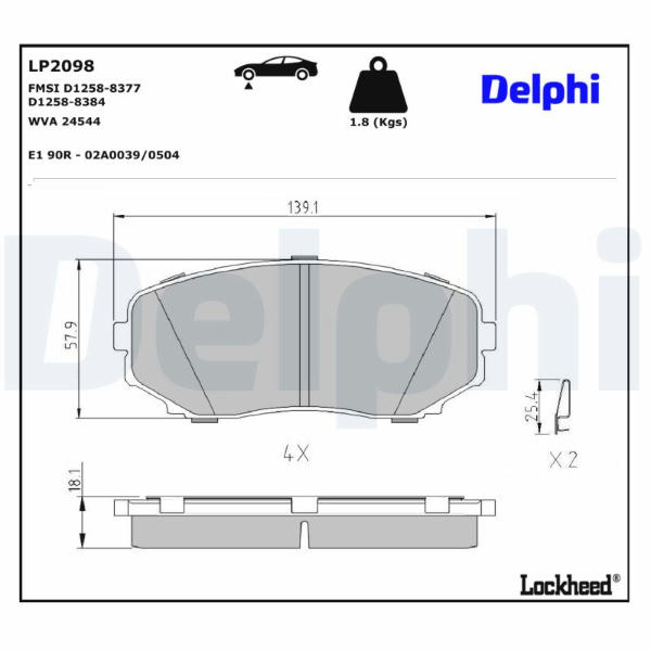 Sada brzdových destiček, kotoučová brzda DELPHI LP2098