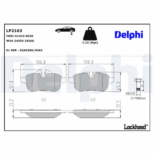 Sada brzdových destiček, kotoučová brzda DELPHI LP2163