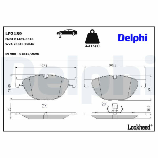 Sada brzdových destiček, kotoučová brzda DELPHI LP2189