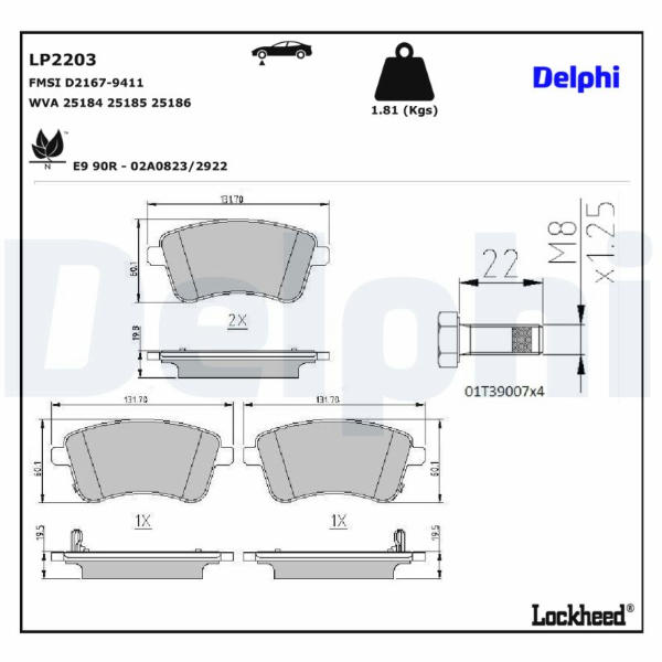 Sada brzdových destiček, kotoučová brzda DELPHI LP2203