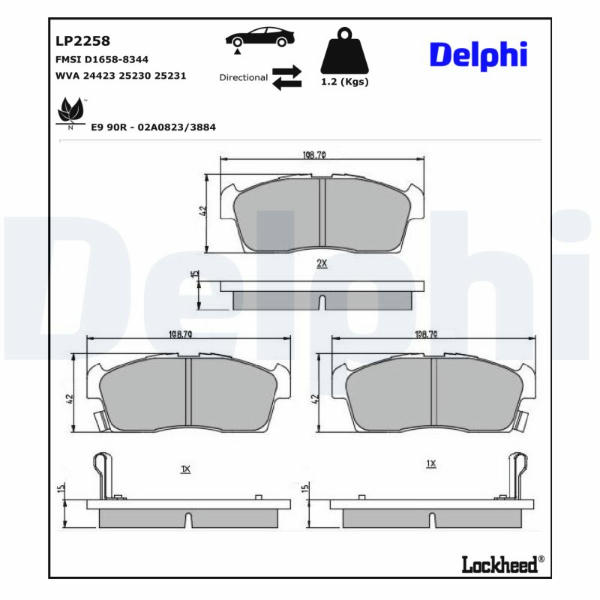 Sada brzdových destiček, kotoučová brzda DELPHI LP2258