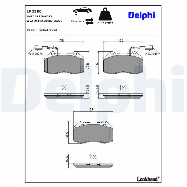 Sada brzdových destiček, kotoučová brzda DELPHI LP2280