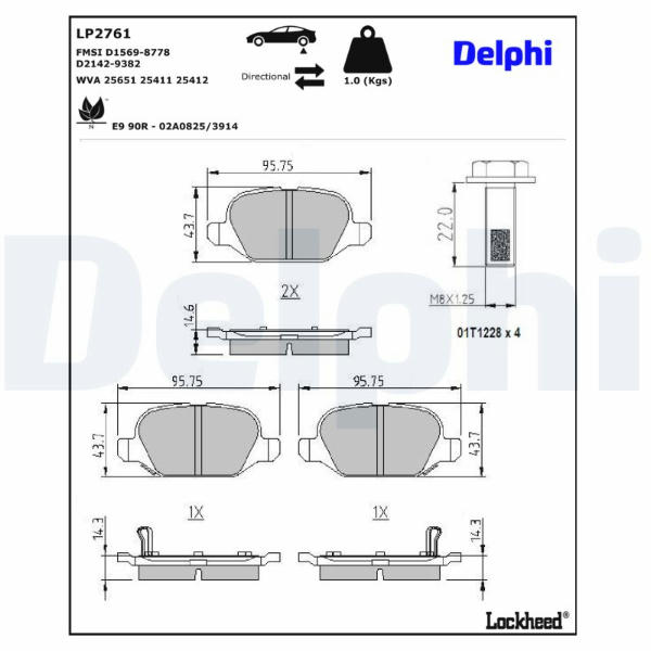 Sada brzdových destiček, kotoučová brzda DELPHI LP2761
