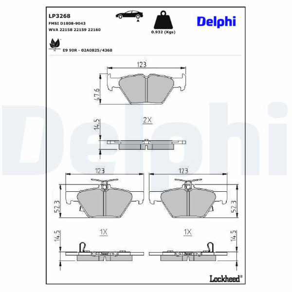 Sada brzdových destiček, kotoučová brzda DELPHI LP3268