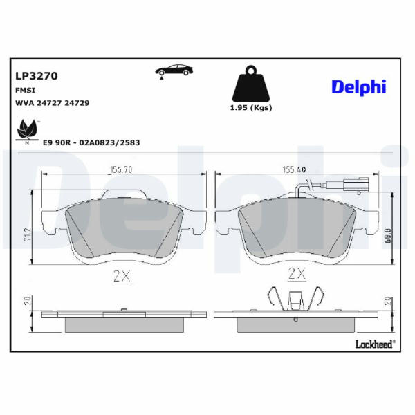 Sada brzdových destiček, kotoučová brzda DELPHI LP3270