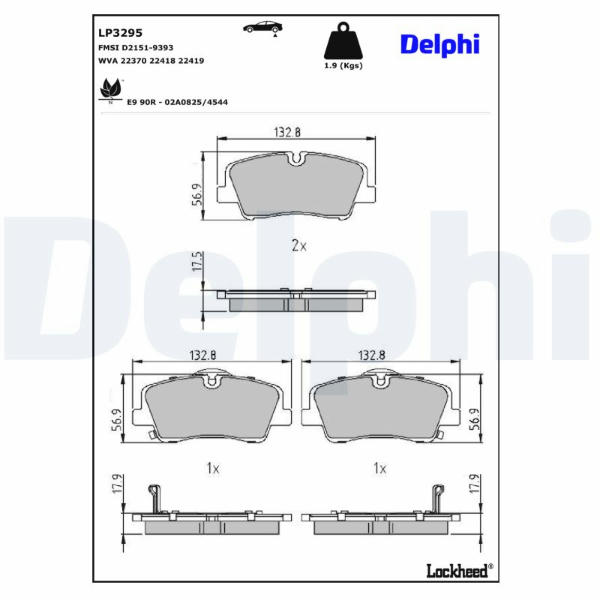 Sada brzdových destiček, kotoučová brzda DELPHI LP3295