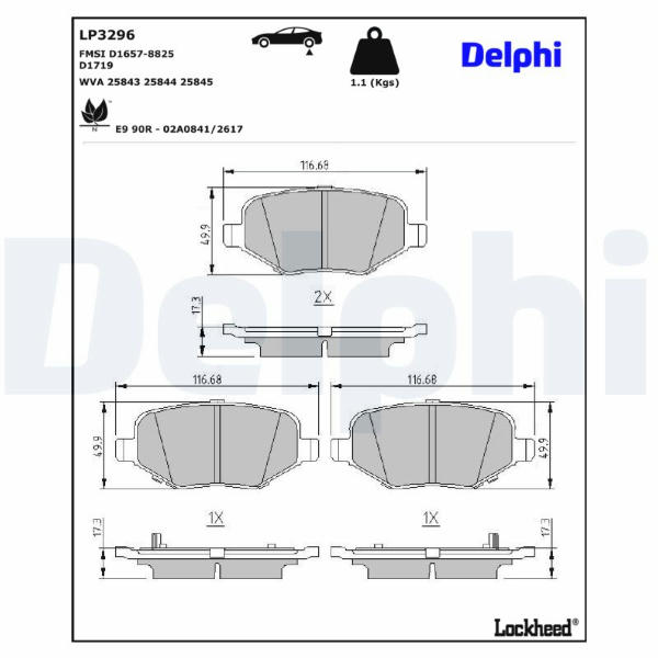 Sada brzdových destiček, kotoučová brzda DELPHI LP3296