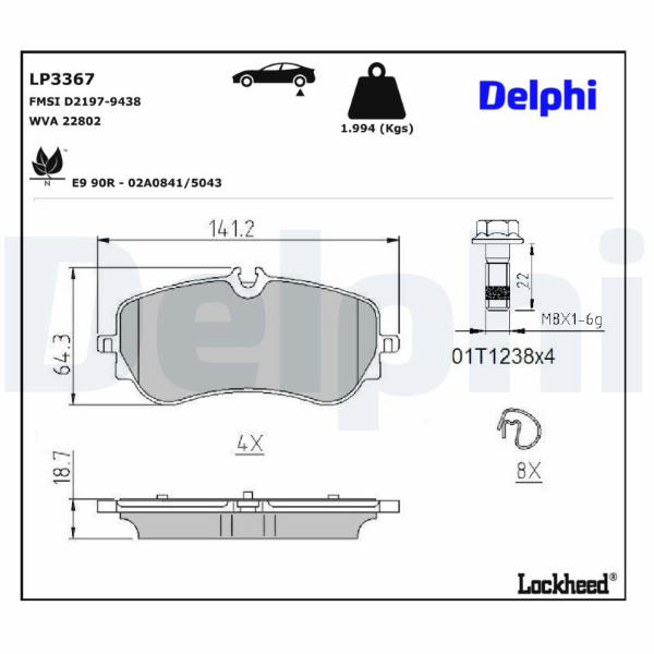 Sada brzdových destiček, kotoučová brzda DELPHI LP3367