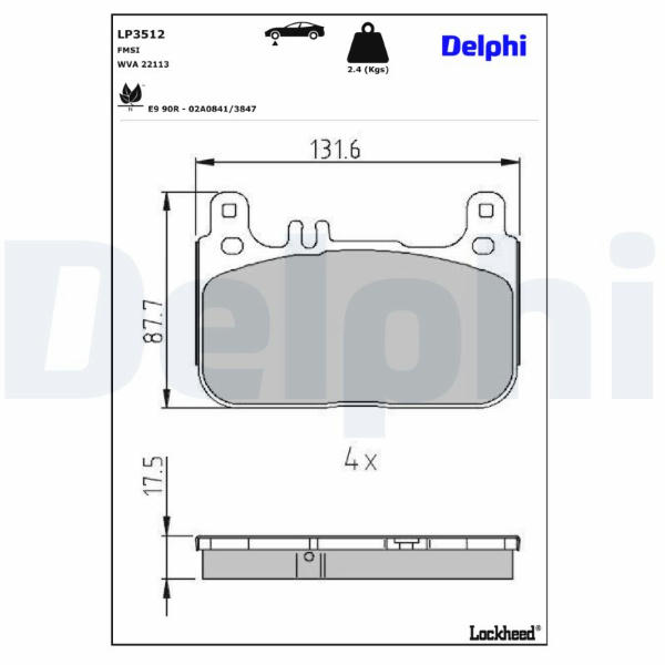 Sada brzdových destiček, kotoučová brzda DELPHI LP3512