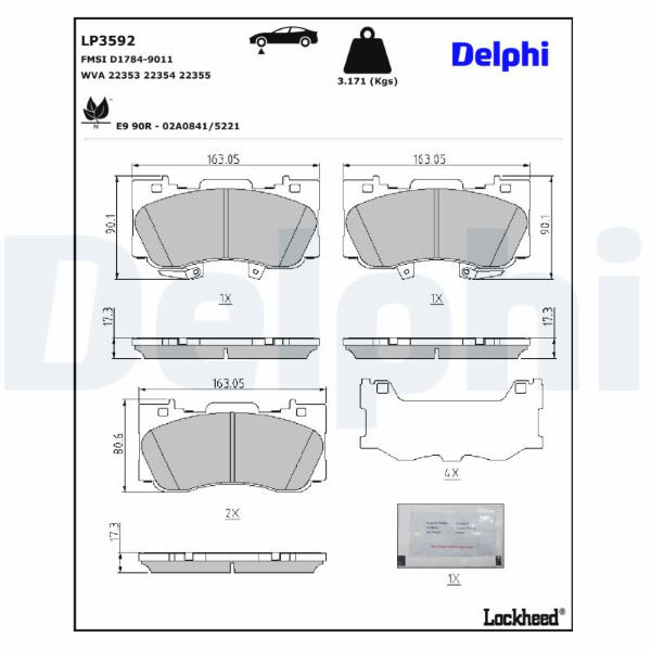 Sada brzdových destiček, kotoučová brzda DELPHI LP3592