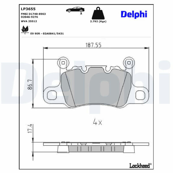 Sada brzdových destiček, kotoučová brzda DELPHI LP3655