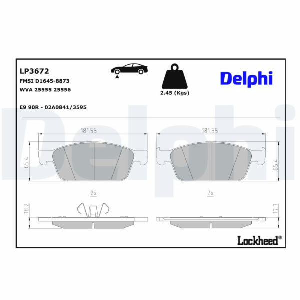 Sada brzdových destiček, kotoučová brzda DELPHI LP3672
