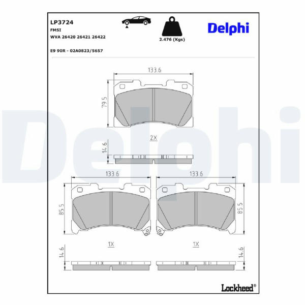 Sada brzdových destiček, kotoučová brzda DELPHI LP3724