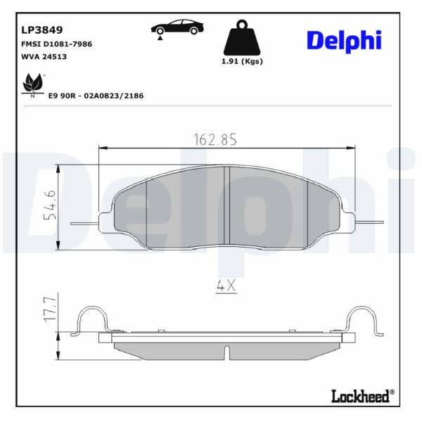 Sada brzdových destiček, kotoučová brzda DELPHI LP3849