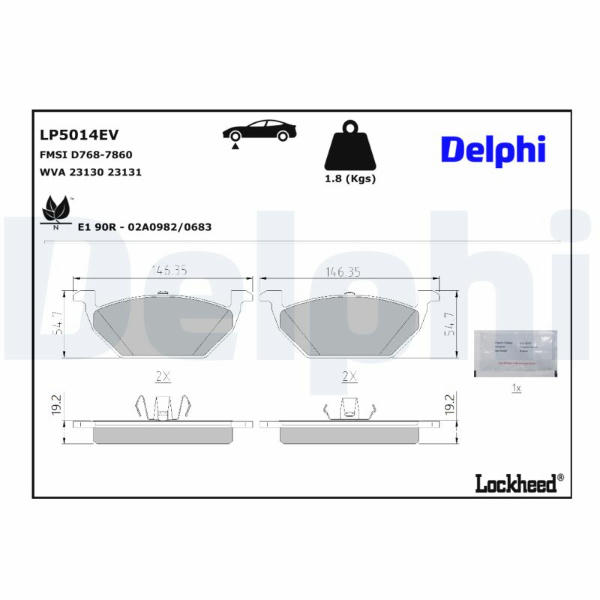 Sada brzdových destiček, kotoučová brzda DELPHI LP5014EV
