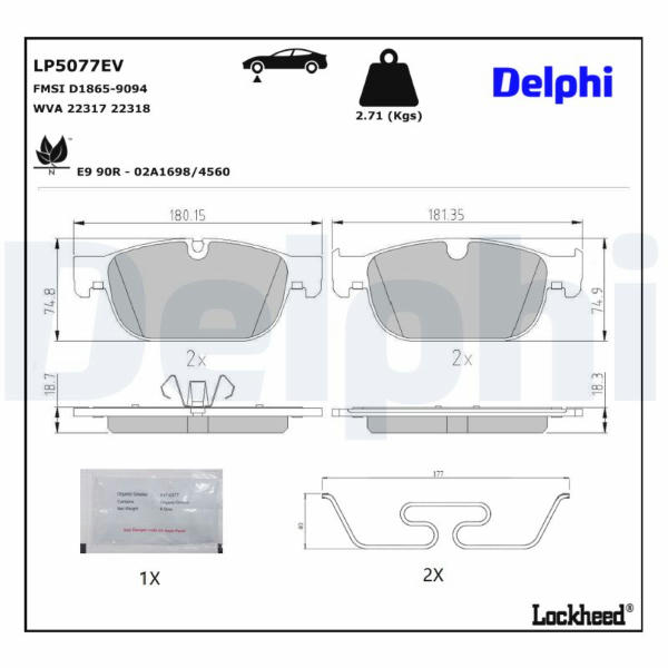 Sada brzdových destiček, kotoučová brzda DELPHI LP5077EV
