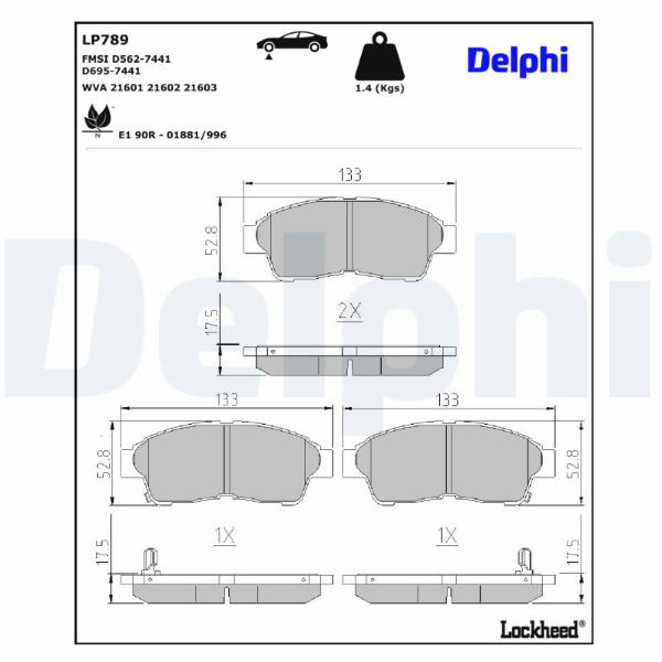 Sada brzdových destiček, kotoučová brzda DELPHI LP789