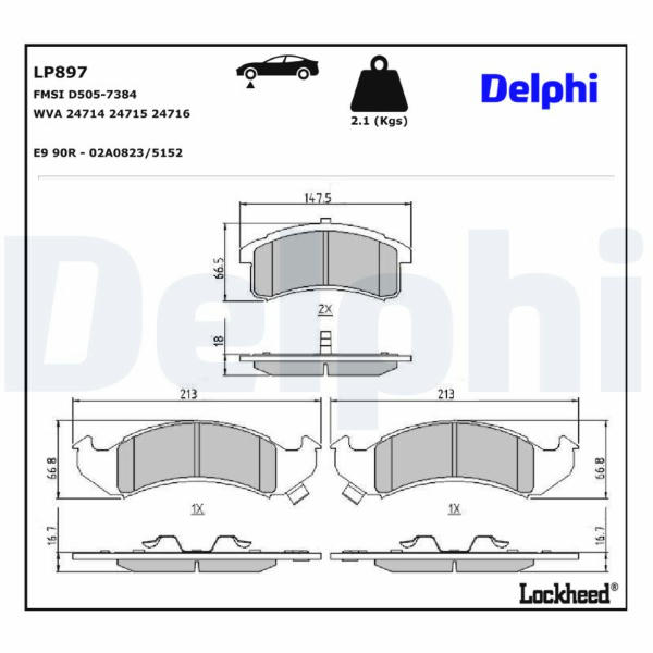 Sada brzdových destiček, kotoučová brzda DELPHI LP897