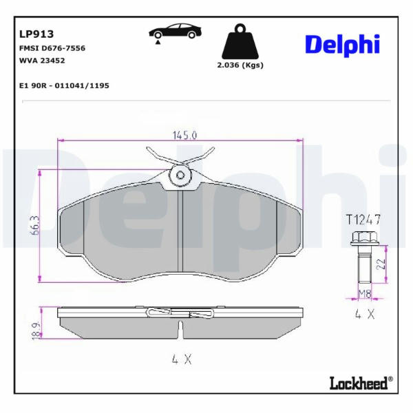Sada brzdových destiček, kotoučová brzda DELPHI LP913