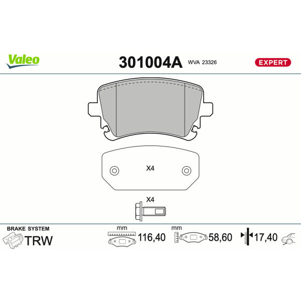 Sada brzdových destiček, kotoučová brzda VALEO 301004