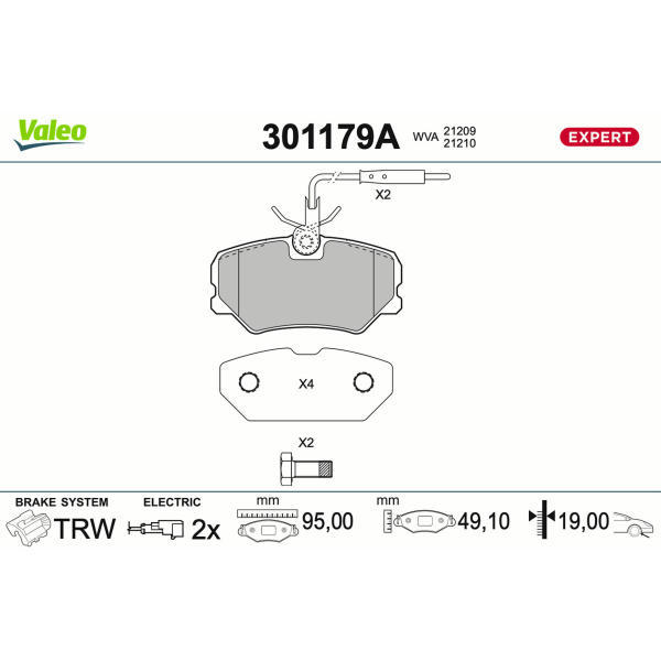 Sada brzdových destiček, kotoučová brzda VALEO 301179A