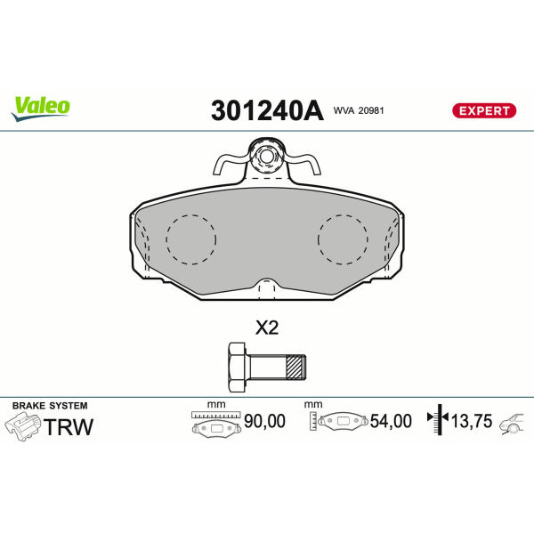 Sada brzdových destiček, kotoučová brzda VALEO 301240