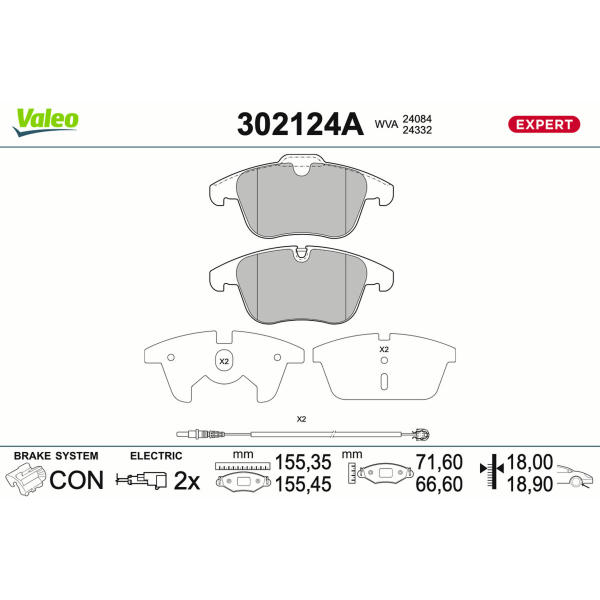 Sada brzdových destiček, kotoučová brzda VALEO 302124
