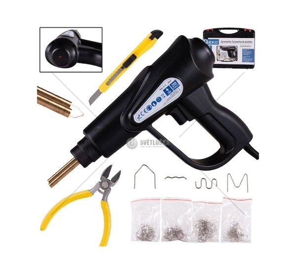 Nepostradatelný nástroj pro každou dílnu nebo karosárnu. Sada je vhodná pro všechny, kteří si chtějí svépomocí opravit rozbité plastové prvky. Pro spojení poškozených plastových dílců se používá natavení horkým vzduchem - praskliny se "sesponkují" pomocí ocelových sponek, které se svářečkou zataví do plastu.