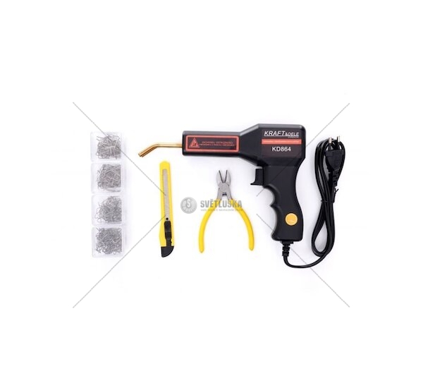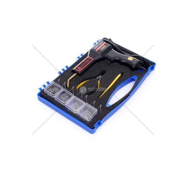 Nepostradatelný nástroj pro každou dílnu nebo karosárnu. Sada je vhodná pro všechny, kteří si chtějí svépomocí opravit rozbité plastové prvky. Spojení poškozených plastových dílců se provádí nahřátím kovových sponek vložených do ramen svářečky - praskliny se tak "sesponkují" pomocí ocelových sponek, které se svářečkou zataví do plastu, přebytečné kovové konce dílů se následně odstřihnou pomocí kleští dodávaných v sadě.