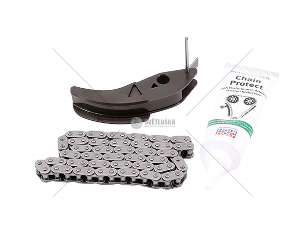- Obsah sady: Rozvodový řetěz, napínací elementy, vodicí lišty, olejové čerpadlo