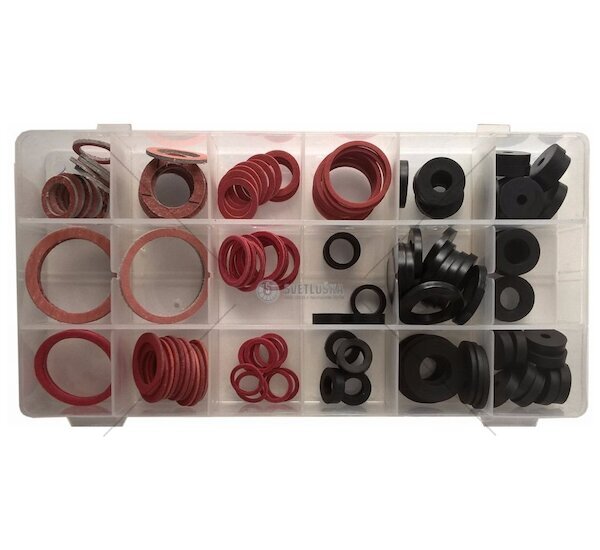 Vysoce kvalitní sada těsnících podložek MAR-POL sestávající ze 141 prvků zabalených do přehledného boxu, nepostradatelný prvek v každé dílně.