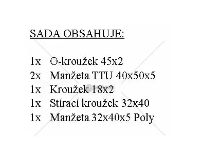 - Obsah sady: sada těsnění pomocného válce a 2× manžeta 40x50