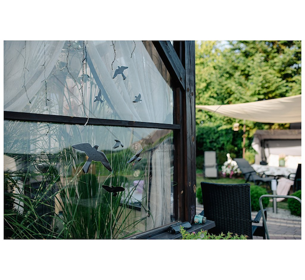 Jednoduchou aplikací na skleněné plochy můžete významně snížit riziko nárazů ptáků. Studie ukazují, že rovnoměrné rozmístění samolepek s mezerami 10 cm na okně o rozměrech 1,2 x 0,9 m zabrání většině srážek, a dokonce i jediná samolepka ve středu okna odradí až 20 % ptáků.