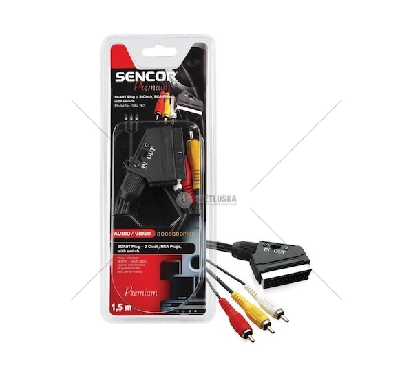 SAV 163-015 Kabel propojovací SCART s přepínačem-3xCinch/RCA konektor SENCOR