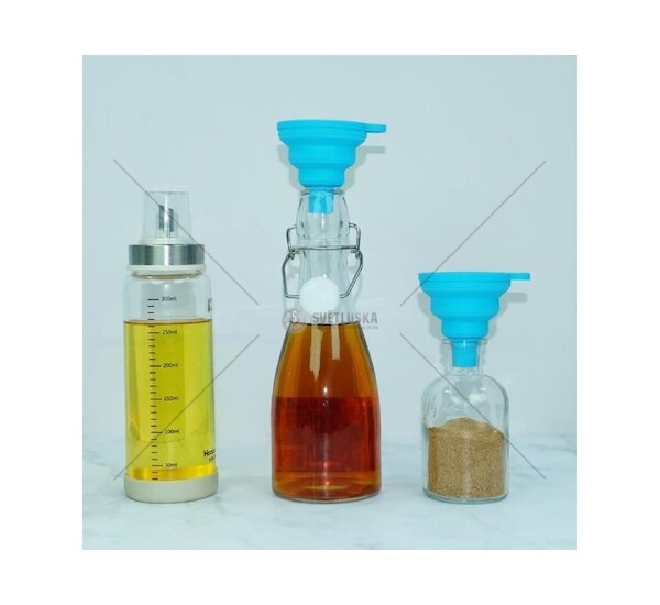 Skládací a kompaktní provedení trychtýře, který lze snadno složit do plochého tvaru, umožňuje uložit ho téměř kamkoliv – ať už je to malá kuchyňská zásuvka, přeplněná skříňka nebo dokonce kempingový batoh.