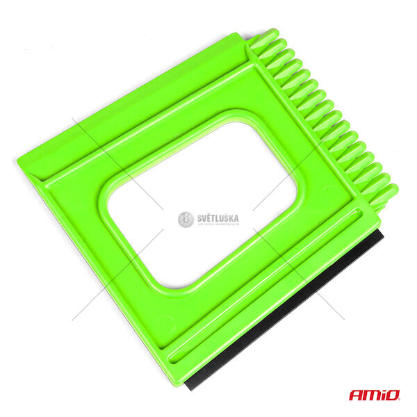 Malá plastová škrabka na čelní sklo s obrovskými možnostmi. Je vhodná jak k čištění skel automobilu od rosy , námrazy, tak k drcení silnější vrstvy ledu. Konstrukce škrabky je vyrobena z pevného a odolného plastu, má pohodlně držící tvar a tři různé hrany: hrana s gumou pro odstranění páry, hrana pro odstranění námrazy, hrana pro rozbití ledu. Díky pásu z gumy odolné proti olejům je škrabka ideální také pro odstraňování vody z hladkých povrchů (okna, zrcadla).